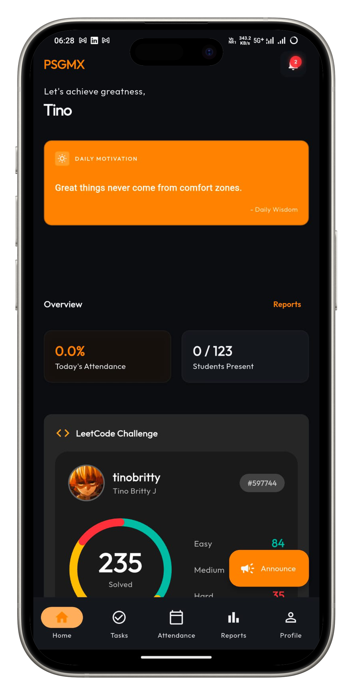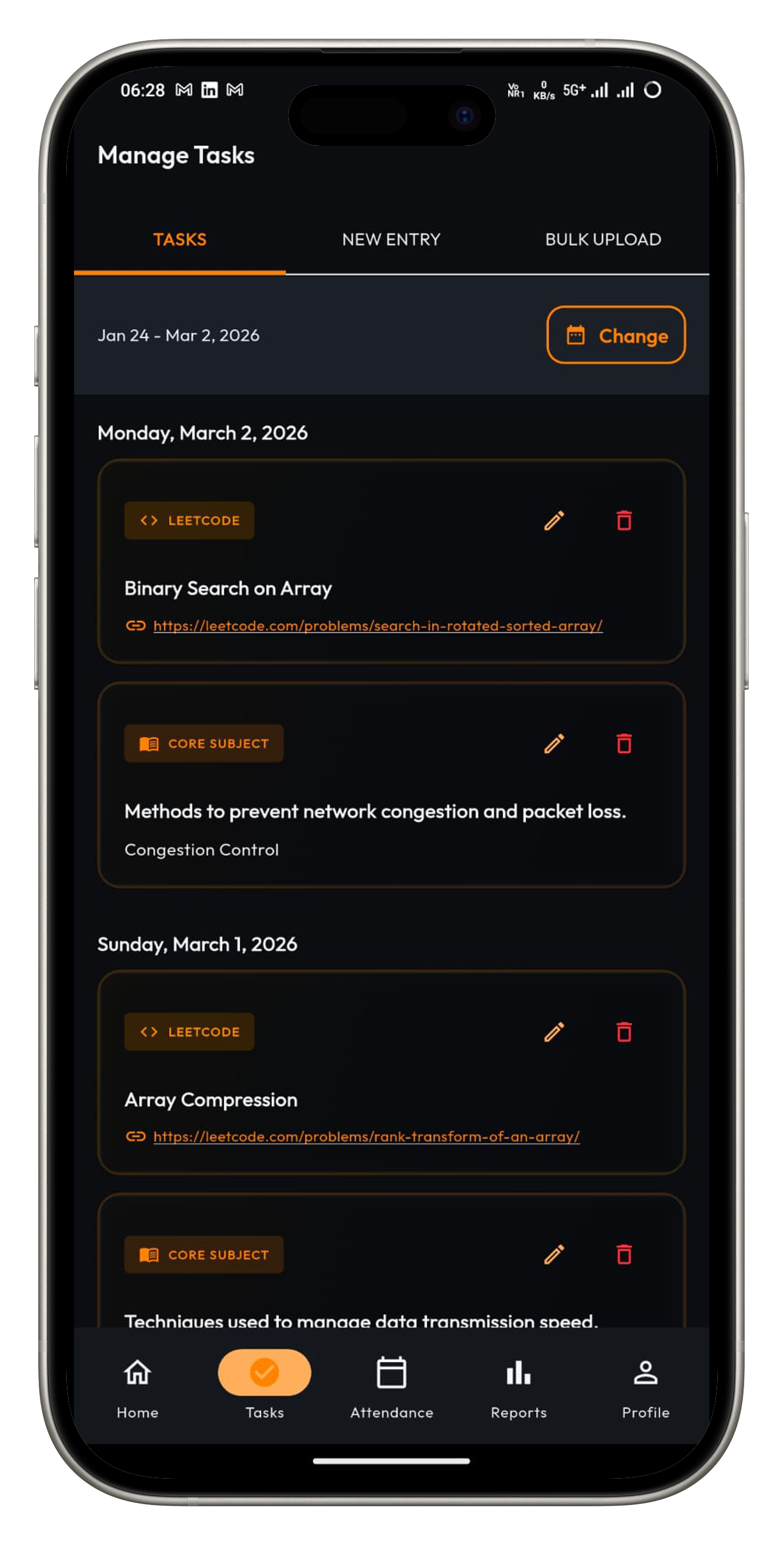| Problem | How I Solved It | |---------|-----------------| | LeetCode API rate limits | 6-hour local caching with manual refresh option | | Offline attendance marking | Local queue using Hive, syncs when connection returns | | Play Store restrictions | GitHub Releases + clear sideloading instructions |